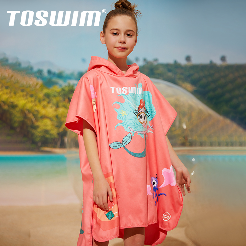 TOSWIM Tuosheng children's cloak bath towel quick-drying absorbent towel warm travel sunscreen children's hooded cloak bathrobe