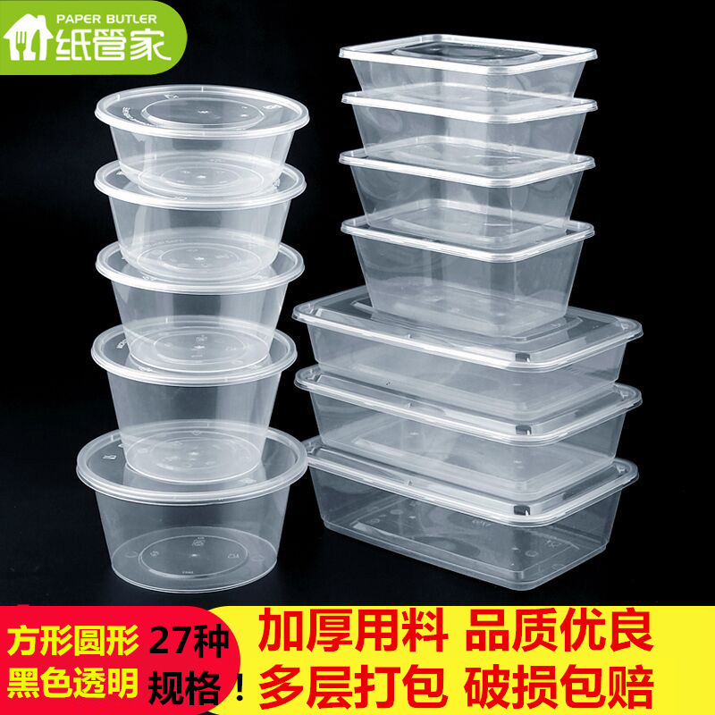 Disposable plastic dining box rectangular round thickened transparent soup bowl fast food delivery packing box 750m1000ml