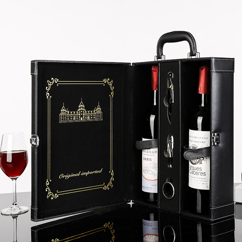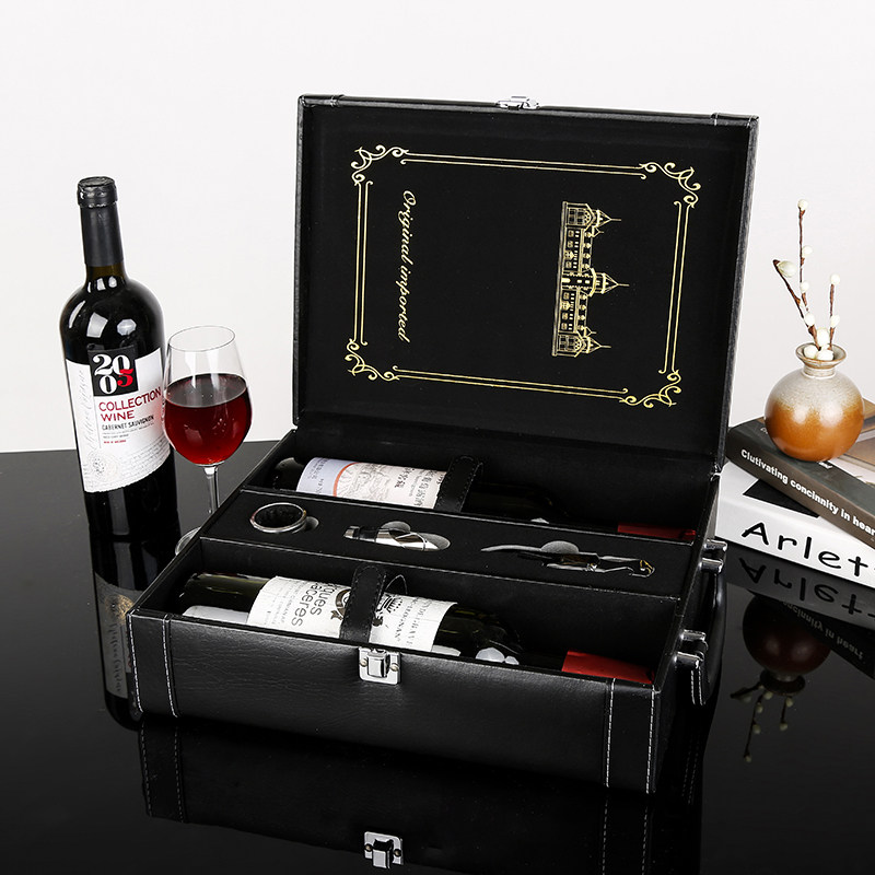 Black elephant ironing double leather box with wine set brown mahogany grain double leather box with wine set big red double sticks with wine set black large double sticks with wine set rhinestone large double sticks with wine set dragon claw pattern large