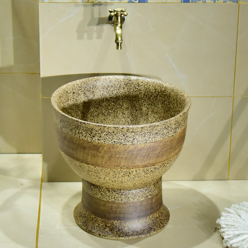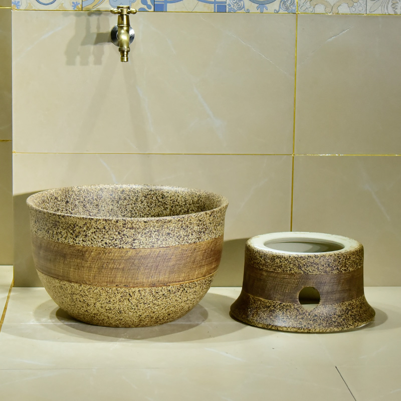 Jingdezhen Ceramics Engraving Lines Mop Pool Retro Art Balcony Makeup Room Home Imitation Antique Simple Mound Pool