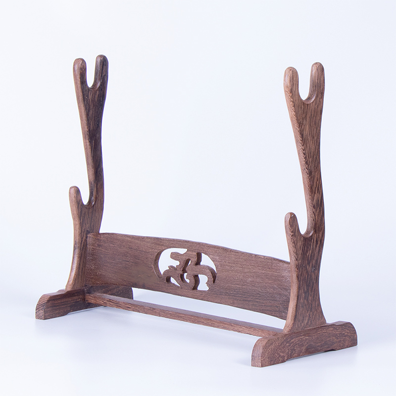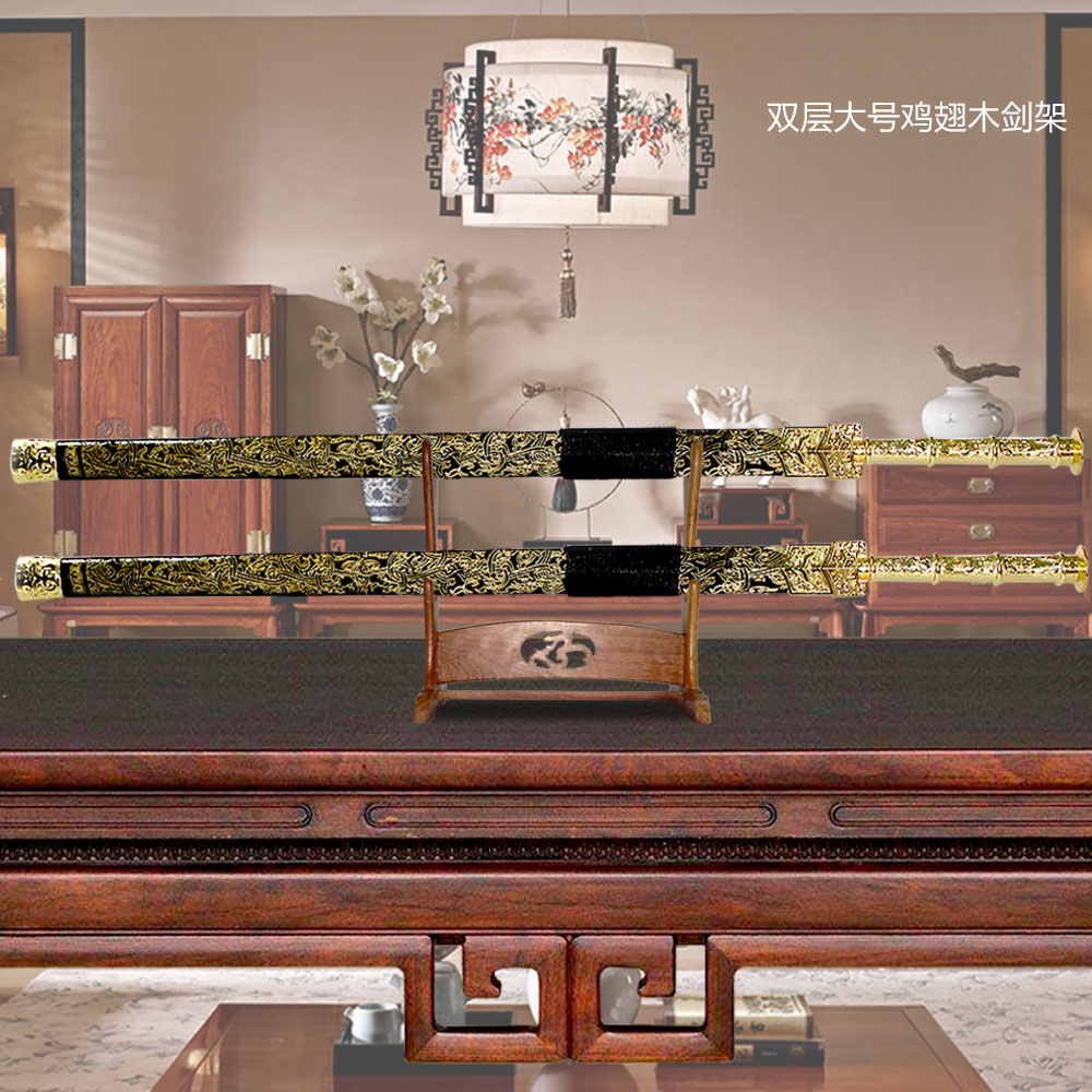 Chicken wingwood sword frame sword holder solid wood sword shelf double sword holder bottom high-grade decorative craft gift
