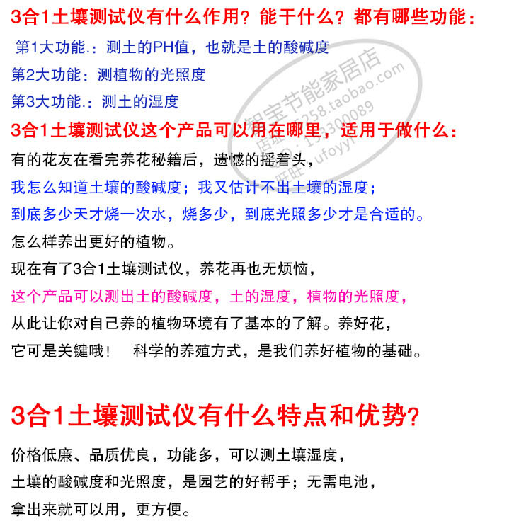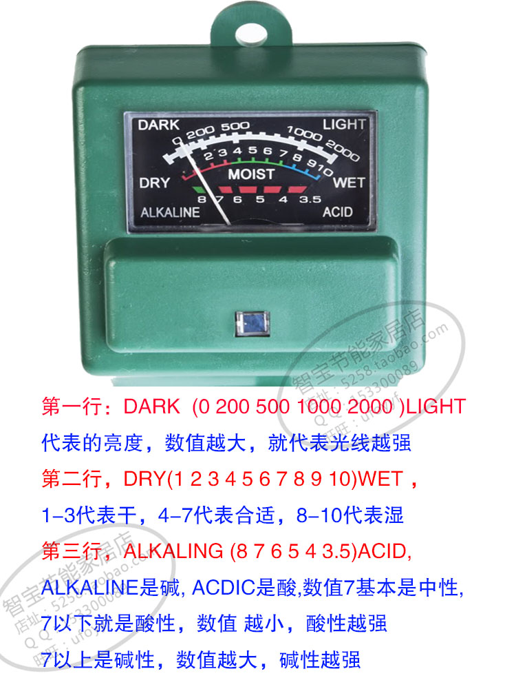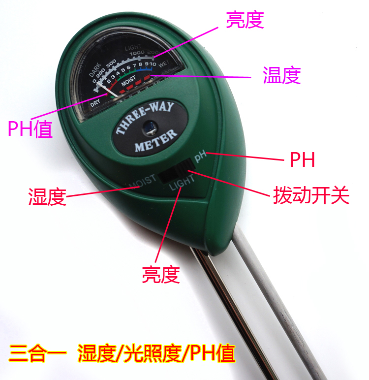 3-in-1 soil meter soil moisture meter PH acidity meter flowerpot plant light intensity acid-base moisture soil tester
