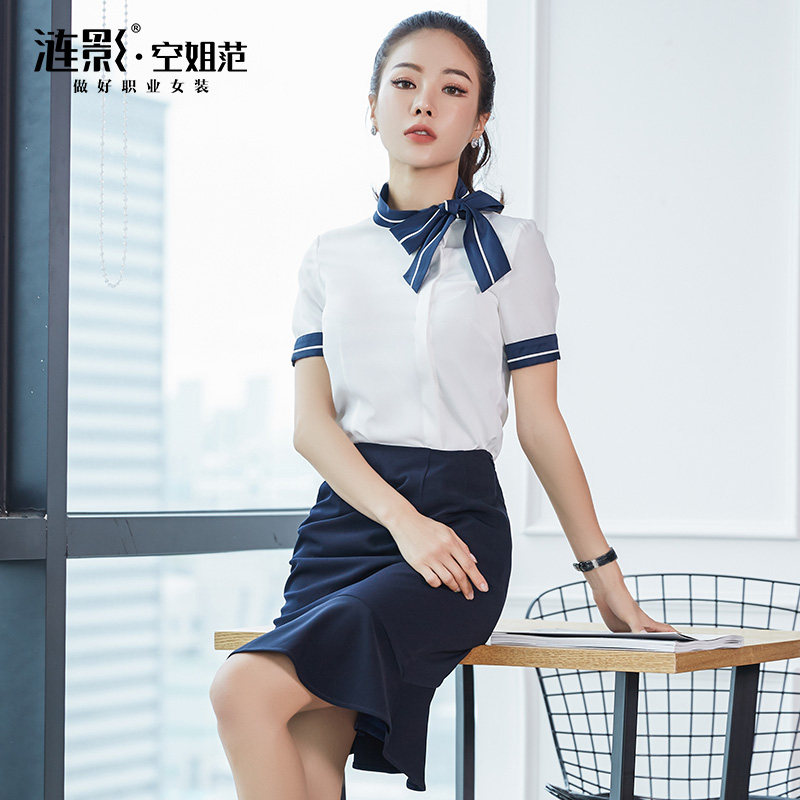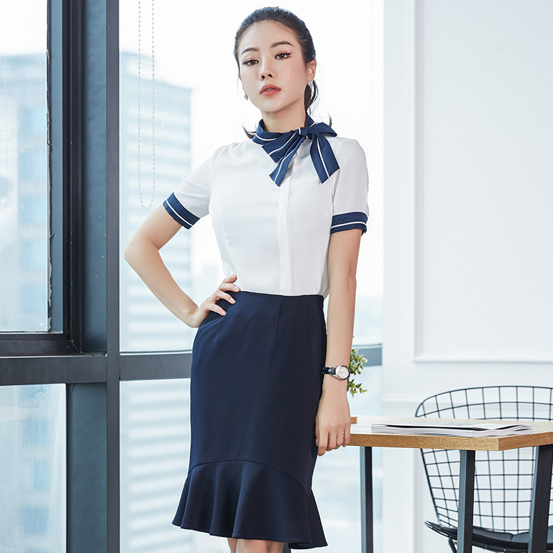 Professional suit Female summer front desk beautician Sample house display center Work clothes Shirt set skirt temperament stewardess uniform summer dress