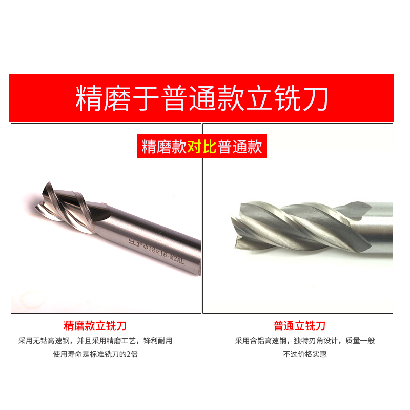 Vanguard steel lengthened second-edge keyway three-edged four-edge straight shank upright milling cutter 12 14 14 18 18 20 22 25