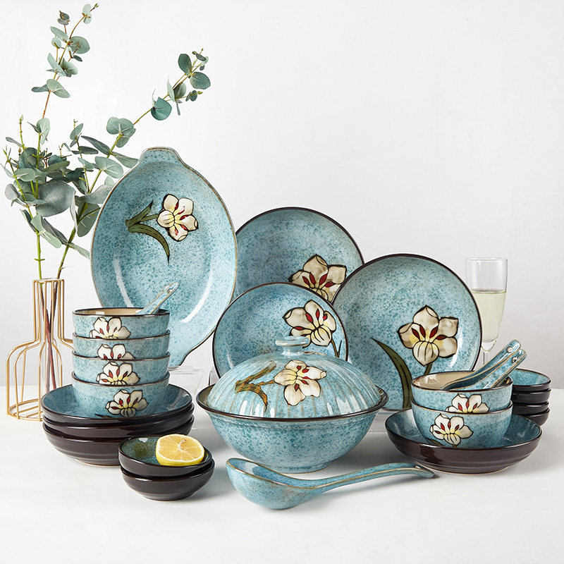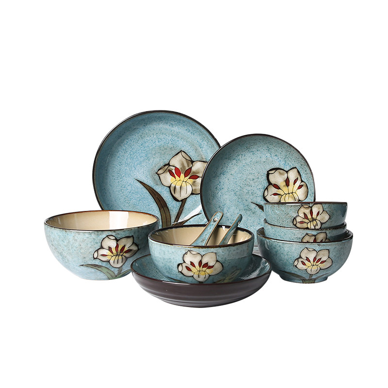 Yuquan Korean dishes set dishes, dishes, household ceramic tableware combination sets, dishes, dishes, chopsticks, underglaze color