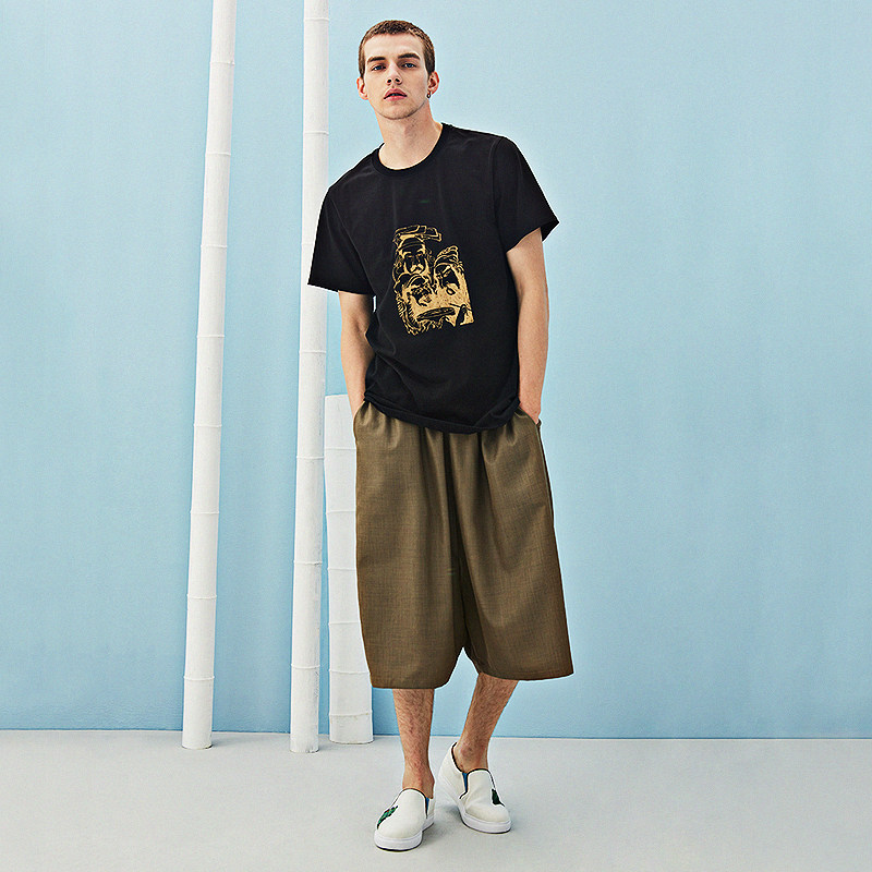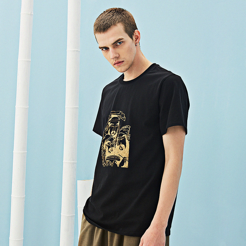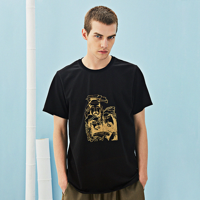 (Men's Beast Hall) Knot Yi China Wind Round Collar T-shirt Short Sleeve Pure Cotton Heavy Pound Printed Vintage Male Lover Costume