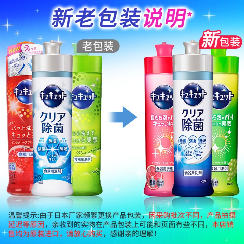 Japan imported Kao dishwashing liquid fruit and vegetable grapefruit detergent kitchen degreasing dishwashing liquid family pack 240ml*3