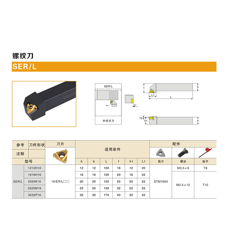CNC external threaded knife with SER1616H16 2020K16 2525M16 with 16ER