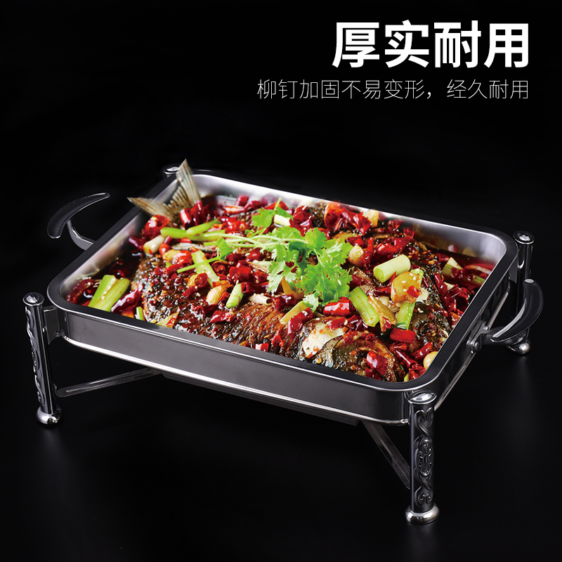 Stainless steel grilled fish stove seafood big coffee plate charcoal commercial carbon grilled alcohol stove shelf home rectangular grilled fish plate