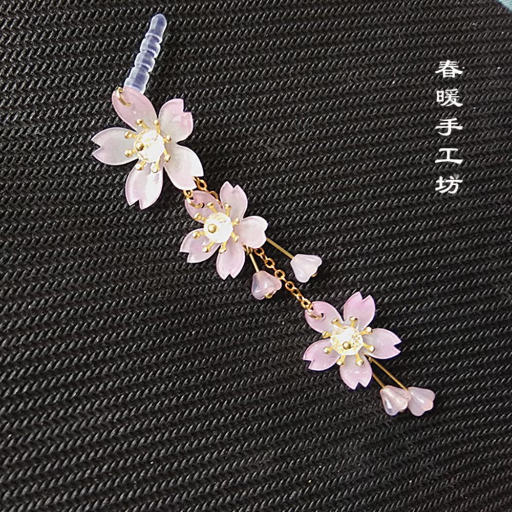 Spring Warmers Workshop Glazed Pink Cherry Blossom Mobile Phone Hanging Rope 3 5mm Android Universal Dust Stopper Mobile Phone White Crystal Pendant