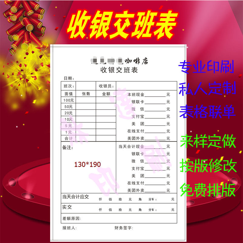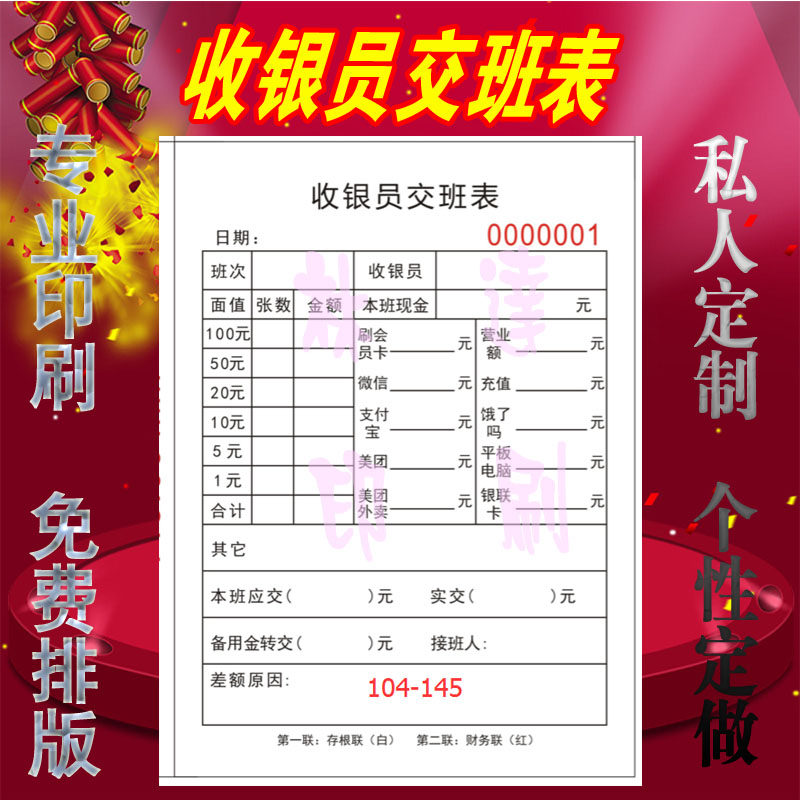 Custom-made cashier payment form printing cashier handover form cash register flow sheet settlement sheet checkout handover sheet
