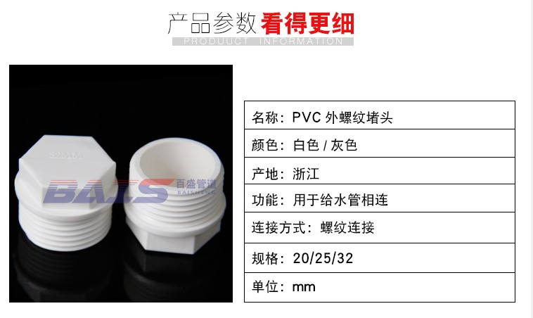 PVC External Tooth Choke Plug Clog Setoux Clog Clogged Tooth Choke Plug to water pipe 20 25 32 4 6 points 1 6