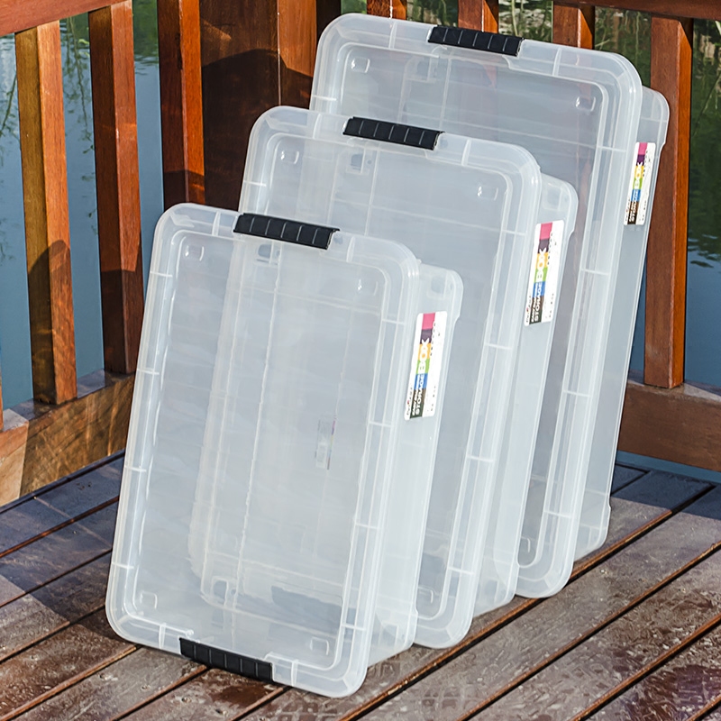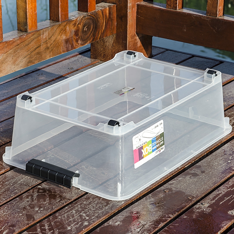 Thickened bed bottom storage box flat transparent finishing box Plastic quilt clothing storage box 17CM high pulley