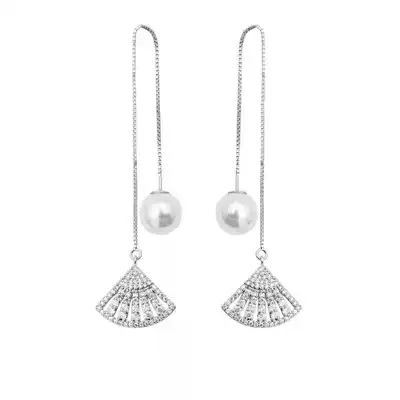 925 pure white fungus female 2021 New Tide fan-shaped pearl earrings long version of earrings thin face Net red temperament ins ins