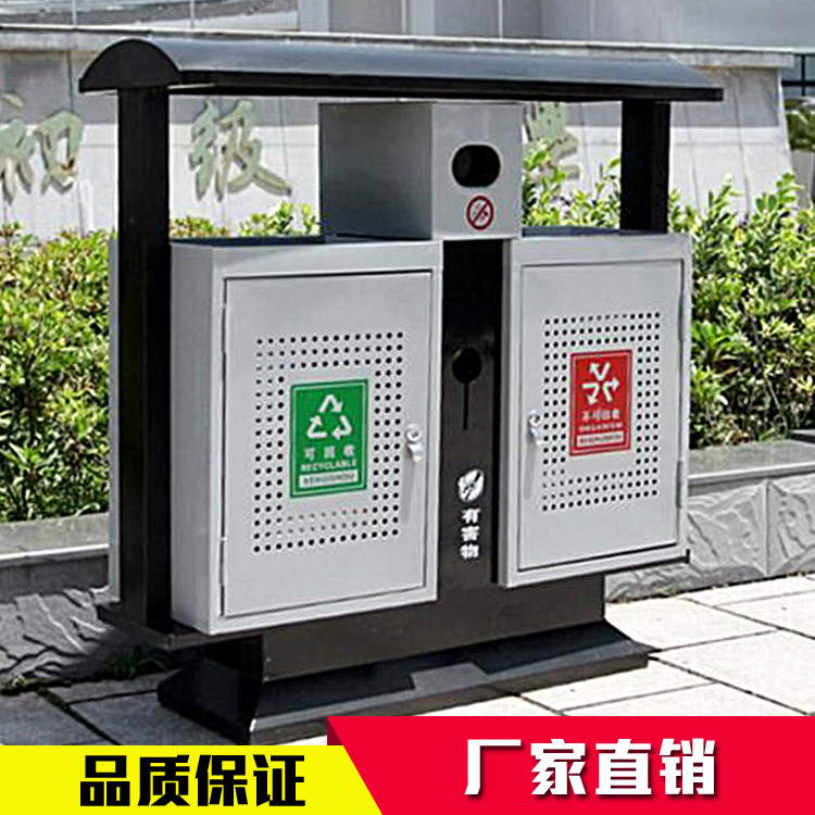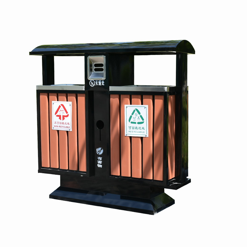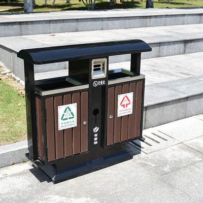 Environmental protection classification trash can stainless steel outdoor plastic wood road double slot outdoor community park street environmental protection bucket