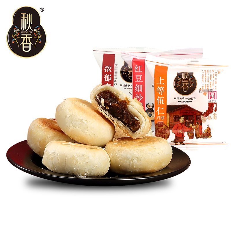 (Just Produced) Qiuxiang Linyi Qiuxiang Mooncake Multi-taste Su Crisp Peel Date Clay 5-Ren Bean Sand Bulk Moon Cake