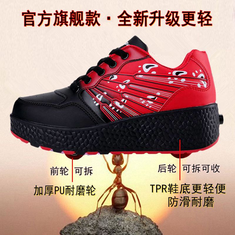 Runaway shoes double-wheeled invisible four-wheeled student roller skates automatic multi-functional boys ' wheel shoes Children's deformation shoes