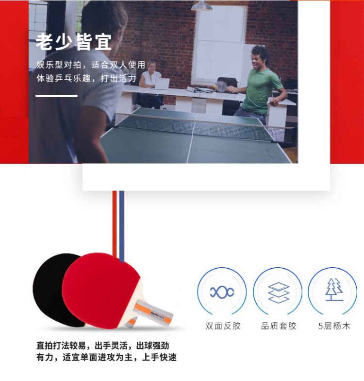 Able sporting goods Angernett elementary school children's family 2 only fit straight beat doubles finished table tennis racket