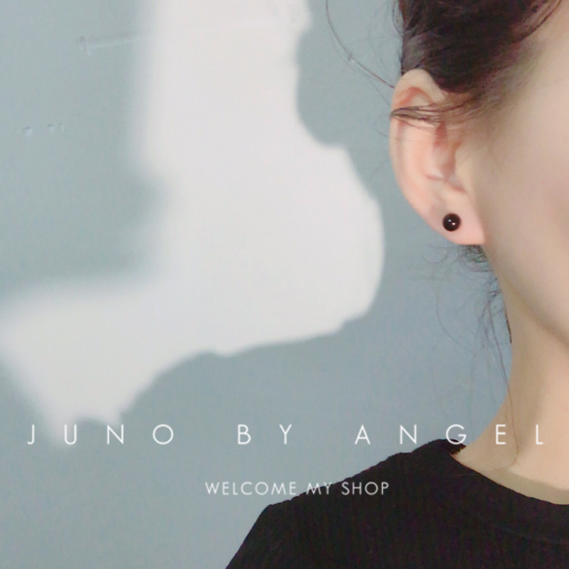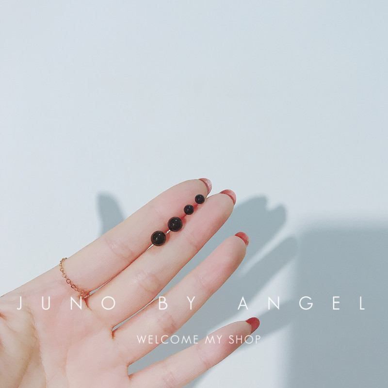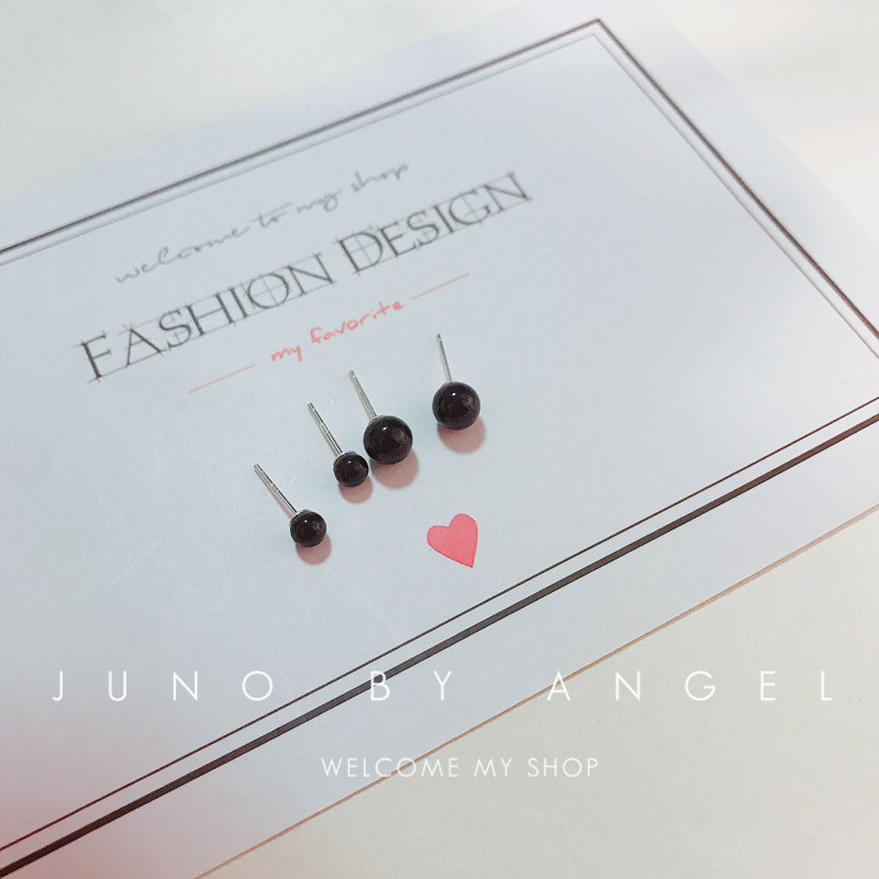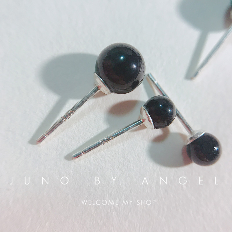 S925 pure silver earshot natural black agate small round pearl ball ear needle female brief retro black dazzling stone earrings male pair