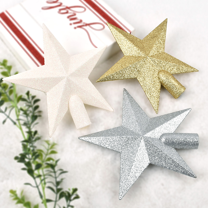 Heidi Christmas Tree Top Decoration Supplies 2D Christmas Tree Top Star Decoration 20CM Shiny Pink Tree Top Star Pentagram Single