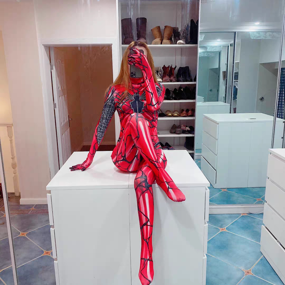 Women's Venom Gwen Spider-Man one-piece bodysuit all-inclusive hooded cosplay zentai suit
