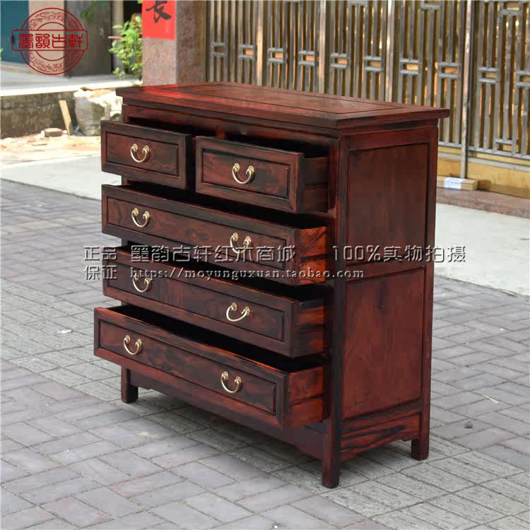 Ink rhyme Guxuan mahogany furniture Laos big red rosewood cochin Dalbergia five-drawer chest Chinese-style solid wood locker drawer