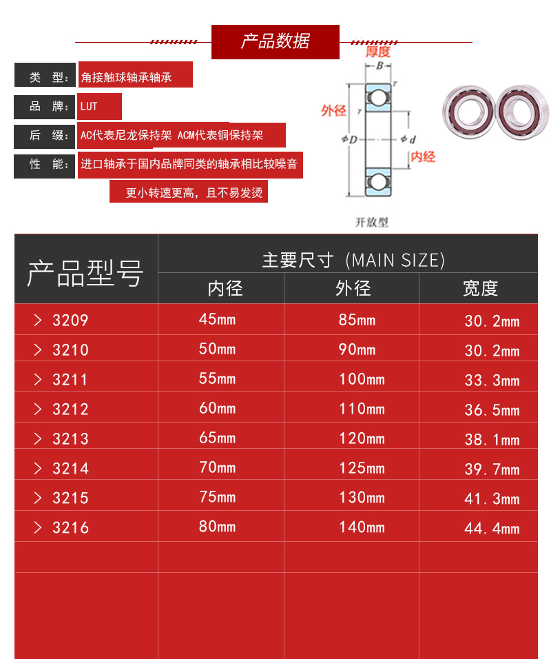 Double row angular contact ball bearings 3209 3210 3211 3212 3213 3214 3215 3216