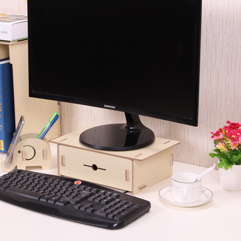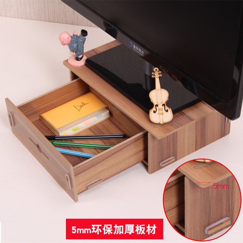 Mini desktop wooden computer screen heightened shelf base storage bracket storage organizer box multi-purpose