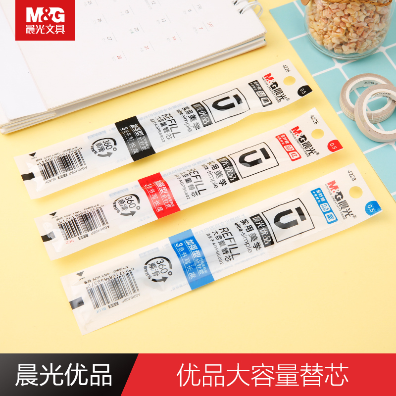 Morning light Uber refill 0 5 black coarse tube Large capacity Sort by moving pen refill Full tube press-type neutral refill Sub-warhead neutral refill Blue student with red refill 2011 speed dry refill