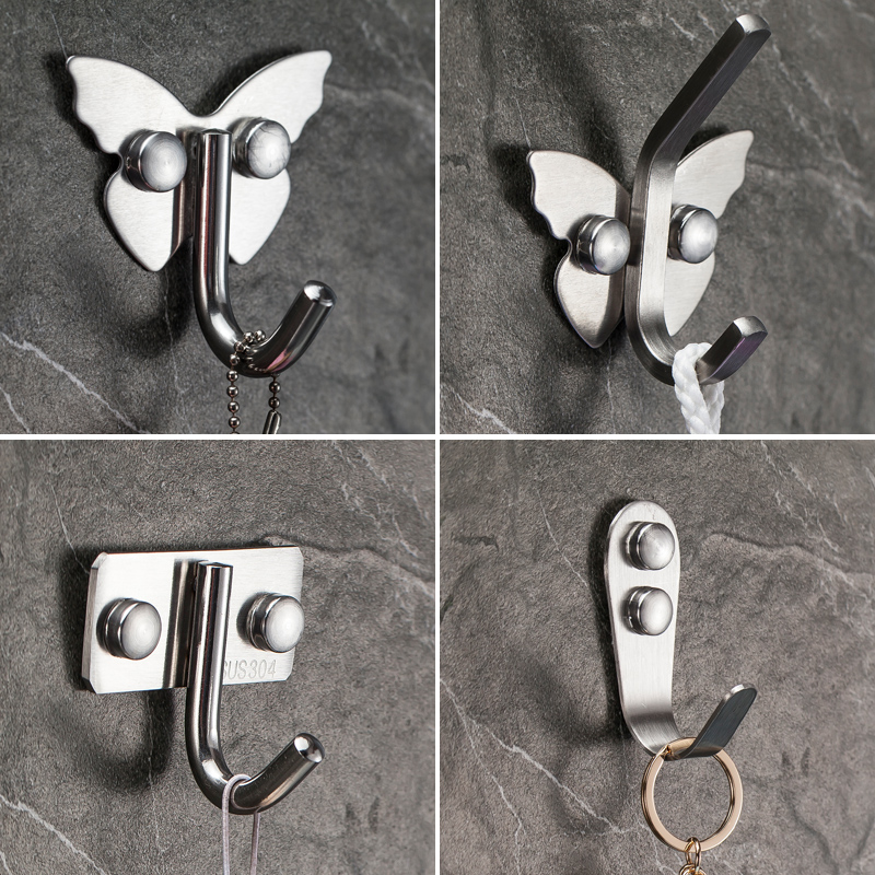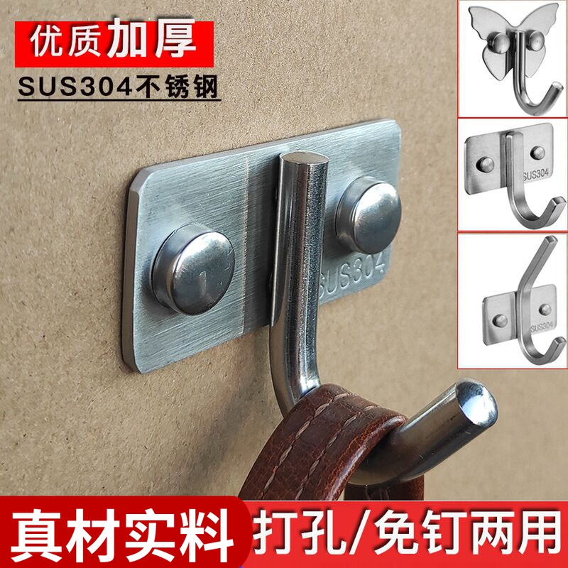 Simple creative single hook 304 stainless steel thickened decorative fitting room non-perforated wall hanging handbag coat hook