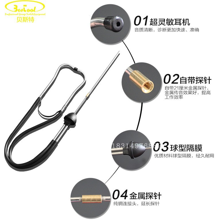 Stainless steel listen to the sound bar Listen to the sound bar Equipment Engine Stethoscope Receiver Leaks Air Leak Sound