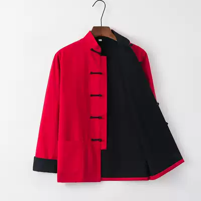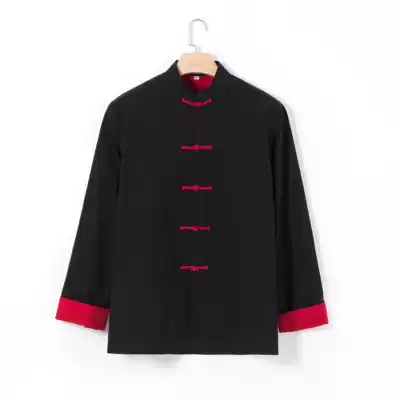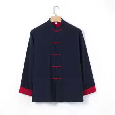 Chinese style men's Tang suit youth long sleeve jacket Chinese spring and autumn cotton hemp Hanfu National style shirt