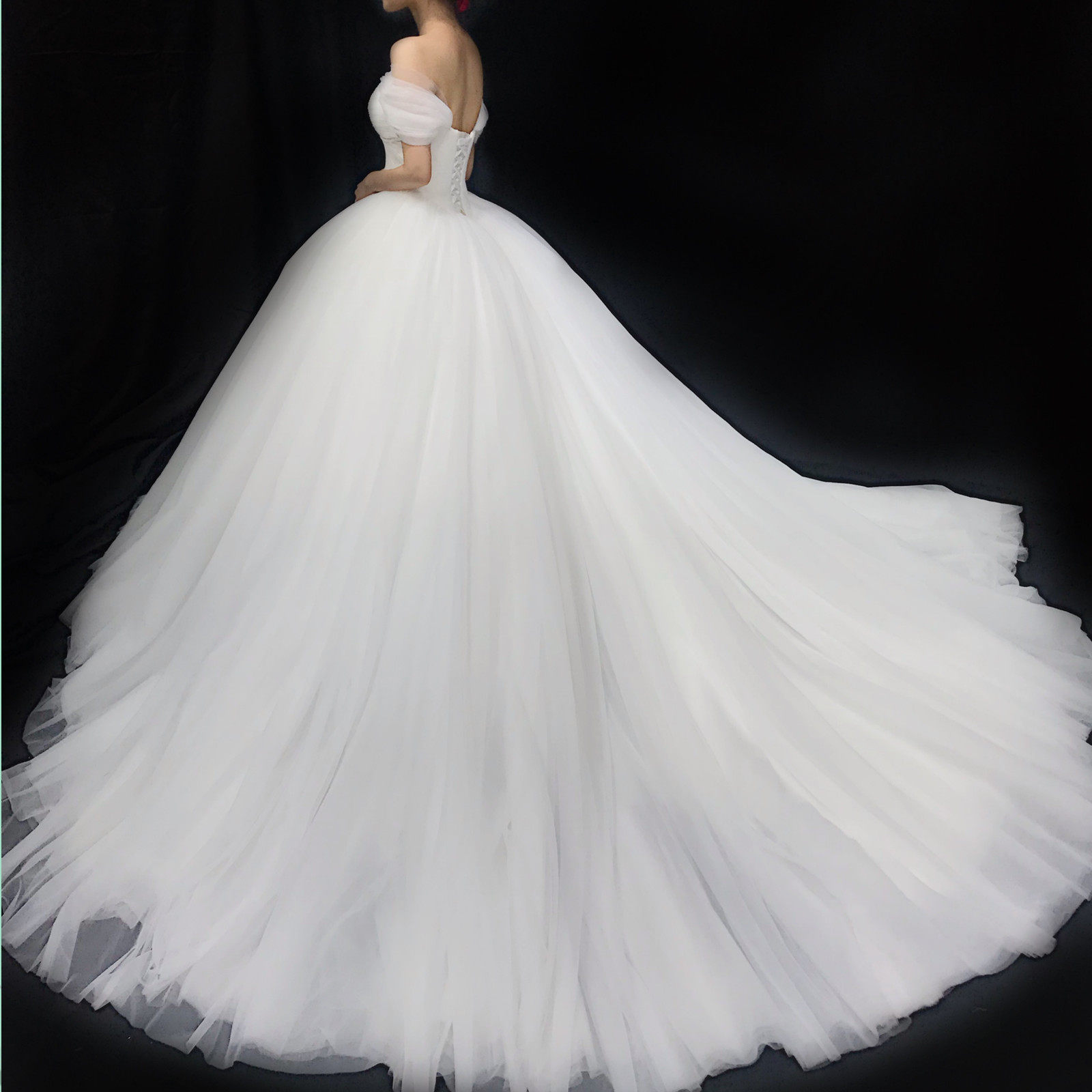 One word shoulder wedding dress is thin and simple tube top pregnant woman large size bride sitting in bed ceremony going out princess fluffy wedding dress girl