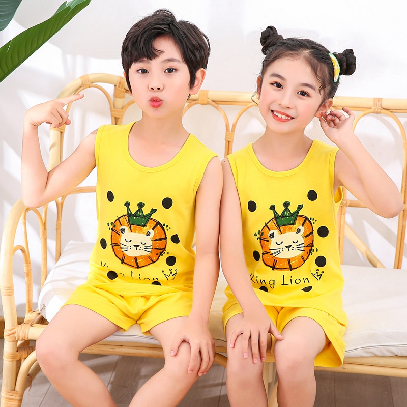 Children's Vest Set Cotton Shorts Baby Summer Children's Girls Summer Dress Children's Wear Boys Sports Two-piece Thin