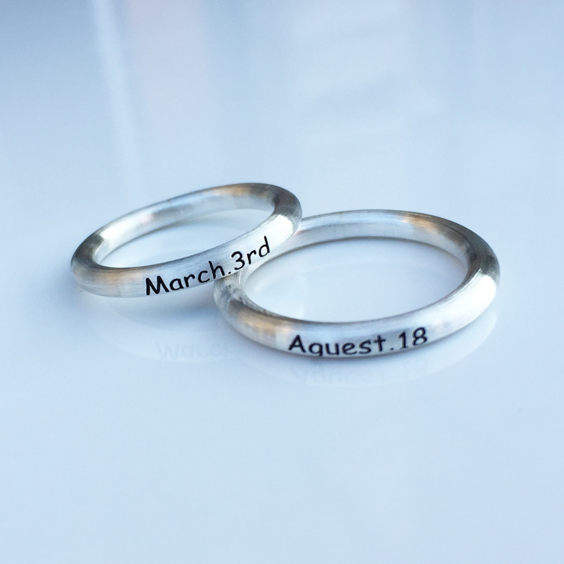 925 pure silver custom arched engraving character ring birthday gift men and women lovers' rings for the ring Jean-Japan-ROK version-Taobao