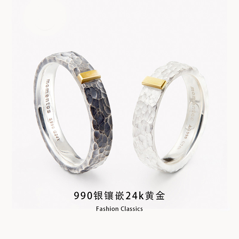 EWEST art uncouples ring 990 silver inlaid 24k gold small crowdmen men and women decorate solid with gift personality
