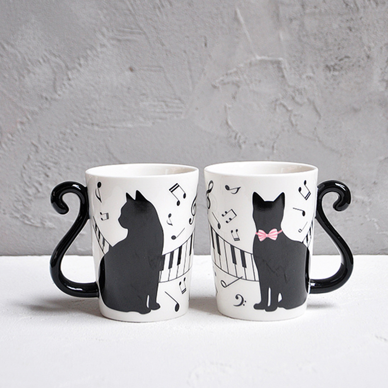 Pink round cat left cup (1) Piano butterfly bow right cat cup (1) English black cat left cup (1) Double dot cat (1) Piano cat (1) English black cat (1 pair) Blue dot cat right