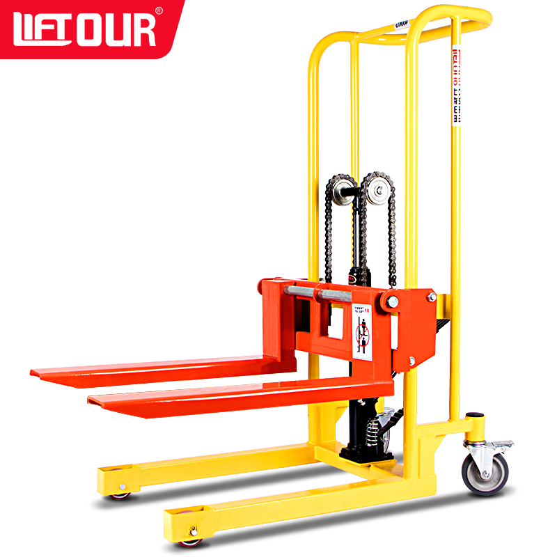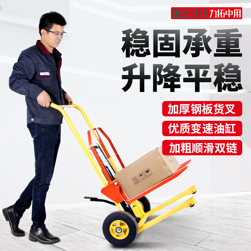 Lifting small forklift manual small light stacker micro hydraulic lift truck household mobile trolley