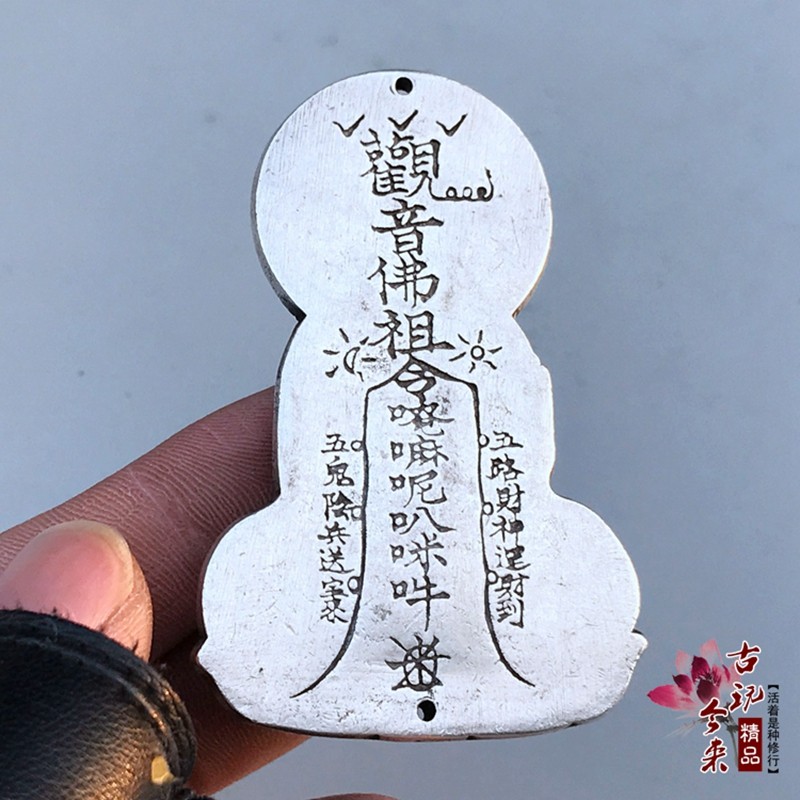 Antique collection Miao silver pure copper silver plated white copper silver pendant waist token bronze Guanyin Buddha