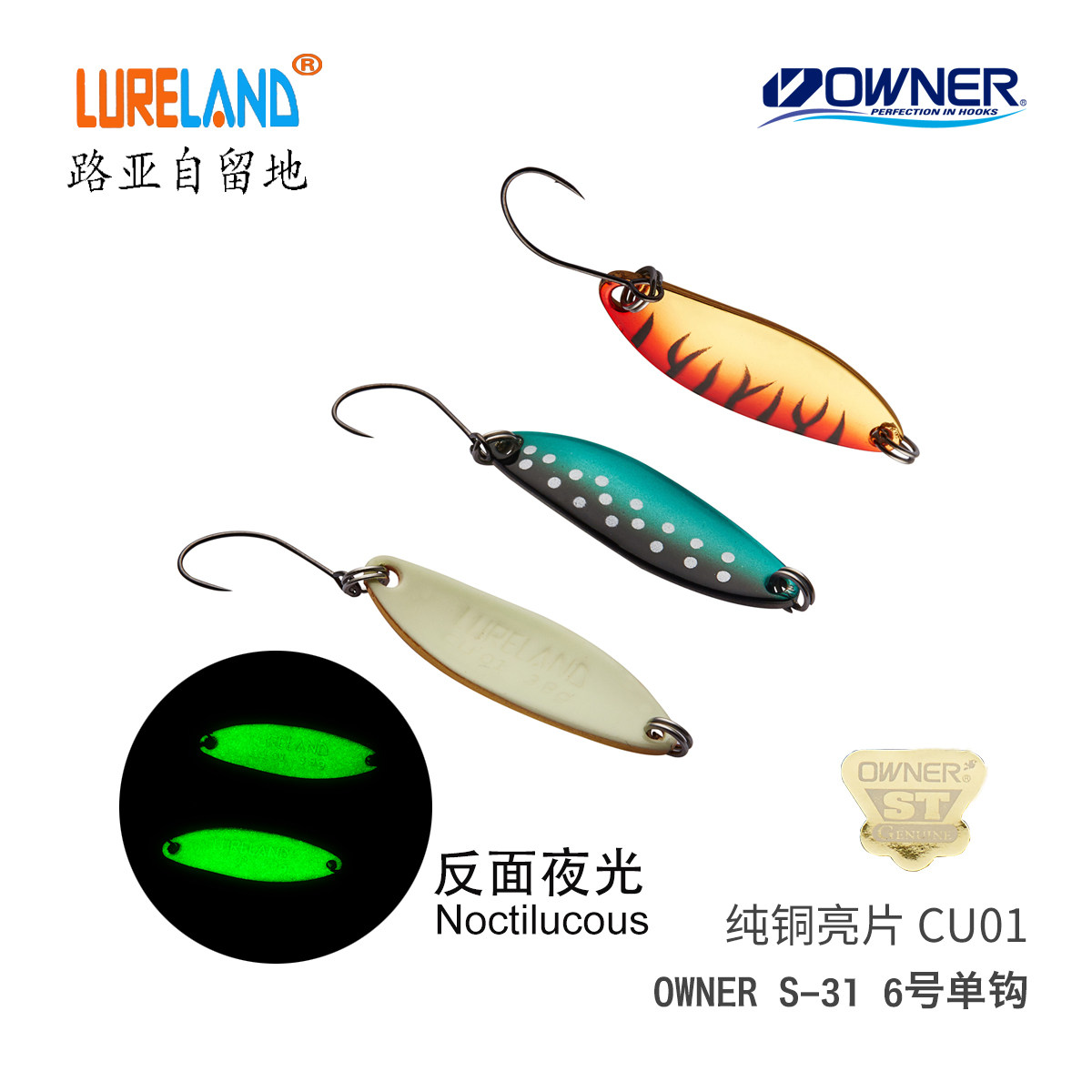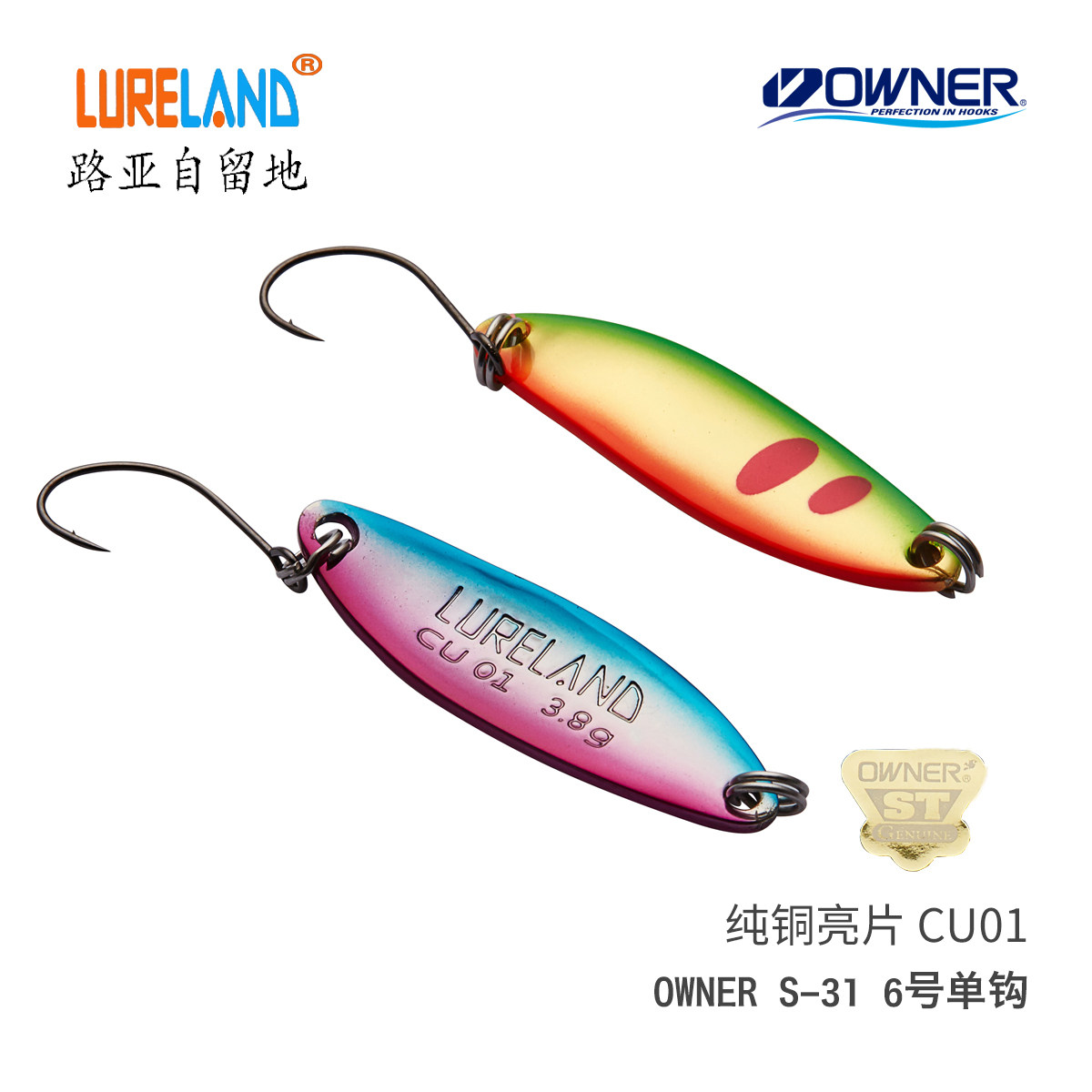 LureLand pure copper sequin CU01 36mm 3 3 8 5 gr Japanese OWNER S-31 stream single hook 6 #
