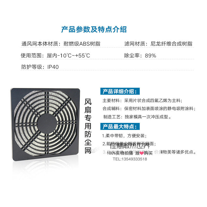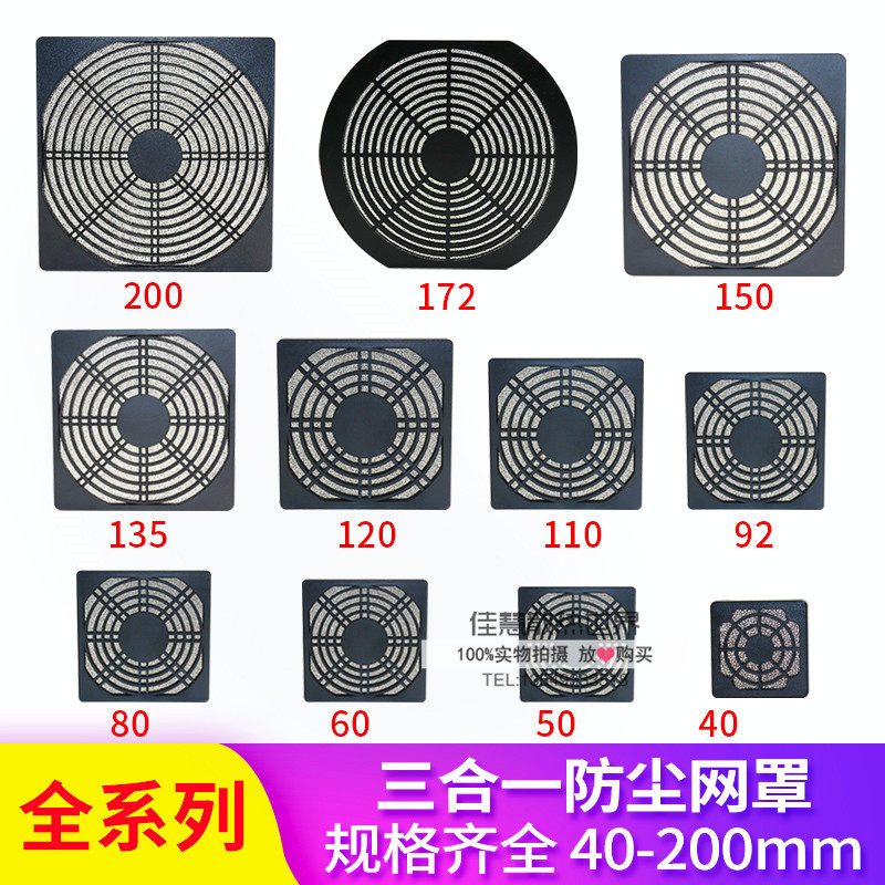 Three-in-one dust mesh cover 4 5 6 7 8 9 12 15 18 20CM fan main shell Sponge plastic filter