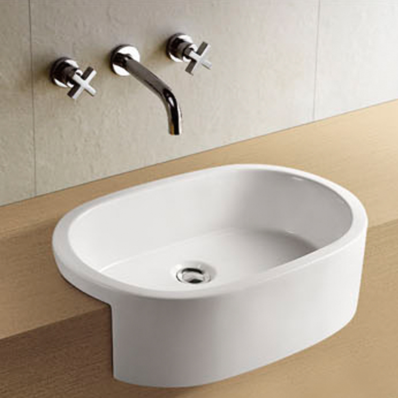 Bathroom semi-recessed counter basin household half hanging wash basin ceramic hanging cabinet basin oval washbasin washbasin