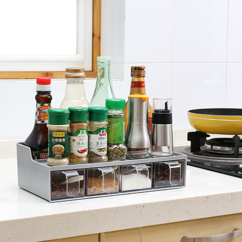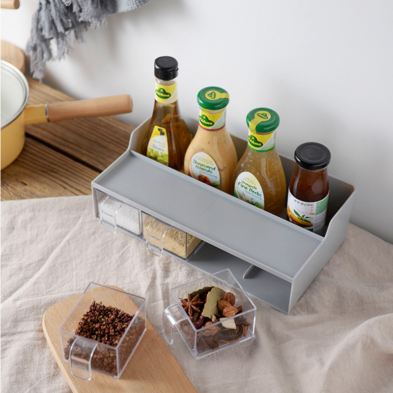 Household drawer seasoning box Kitchen seasoning tank set Household seasoning bottle shelf Plastic salt jar seasoning box