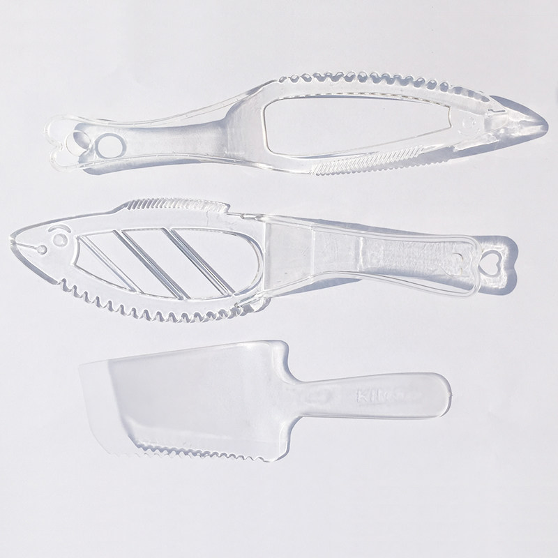 Disposable cutter plastic machete birthday cake knife transparent cutter with toothed spatula bulk independent packaging
