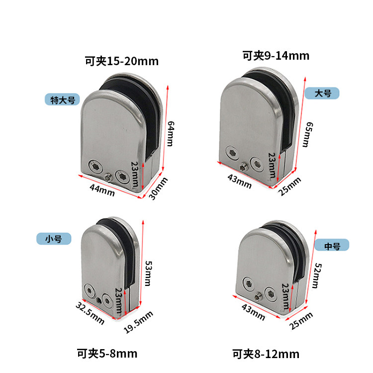 304 stainless steel glass clip fish mouth clip fixing clip Stair glass railing fixing clip Handrail railing glass clip