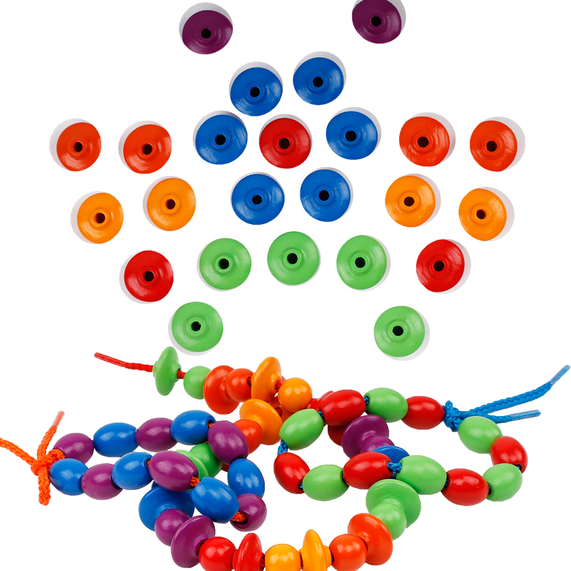 0-3 Year Old Wooden Puzzle Toys Early Education Enlightenment Teaching Aids Sensory Strings Beads Game Baby Weak Vision Threading Through Beads
