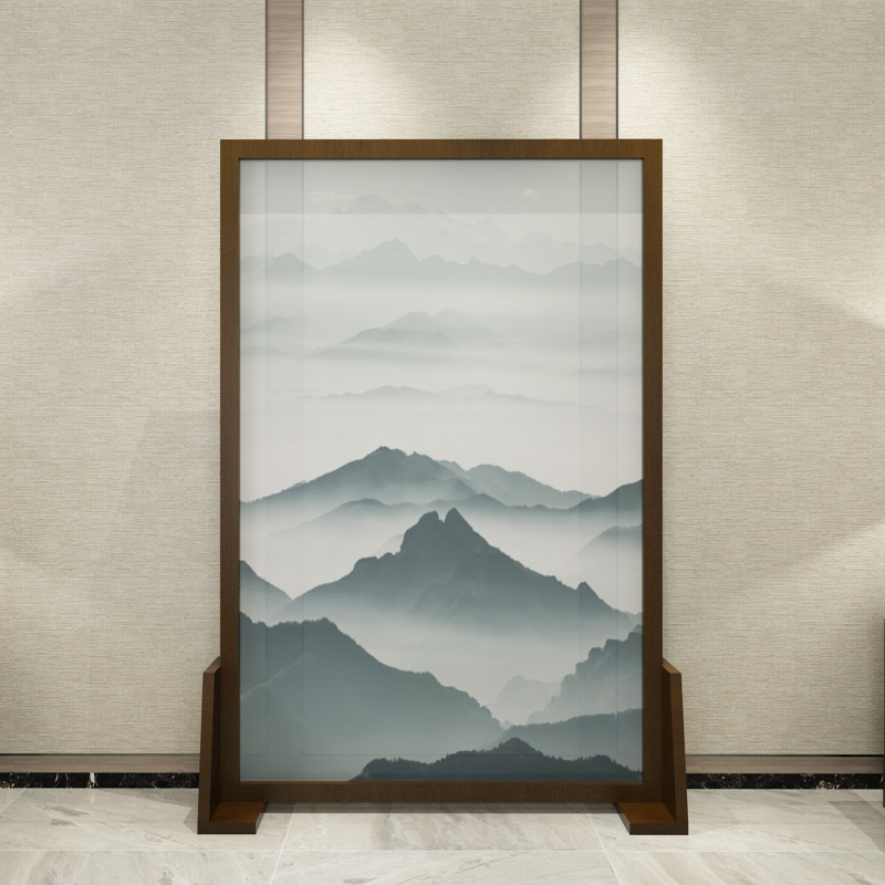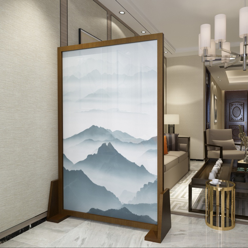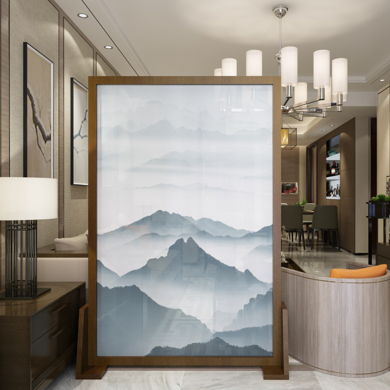 Screen partition Living room solid wood new Chinese style modern landscape painting Office bedroom mobile decoration double-sided seat screen customization