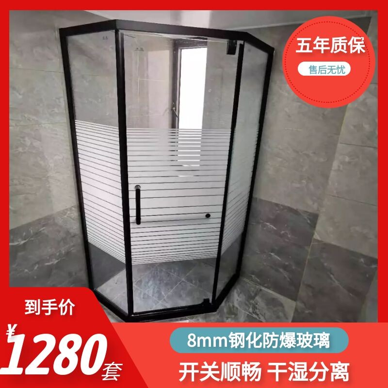 Diamond Type Stainless Steel Shower Room Partition Makeup Room Dry Wet Zone Separated Tempered Glass Partition Arched Trilateral Type