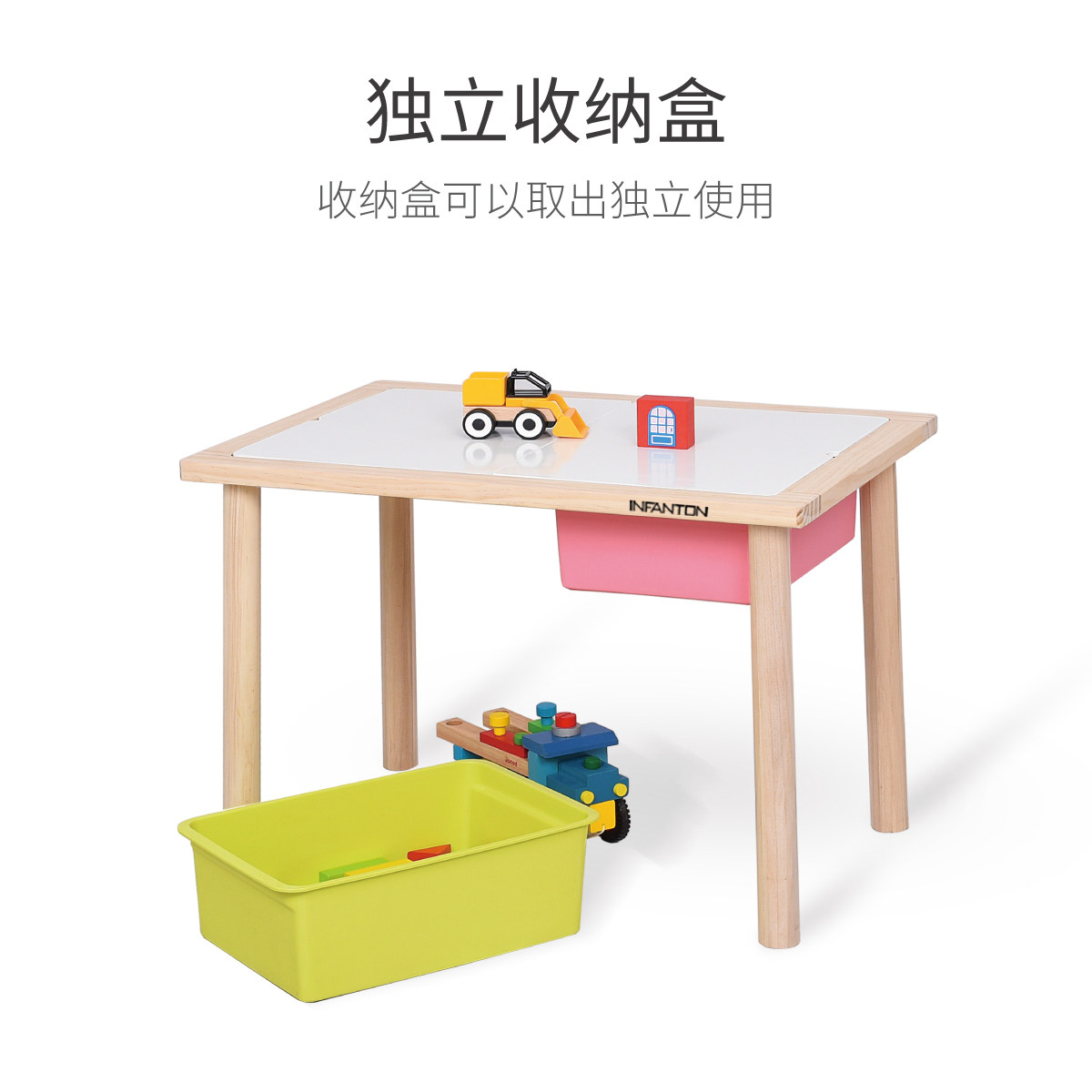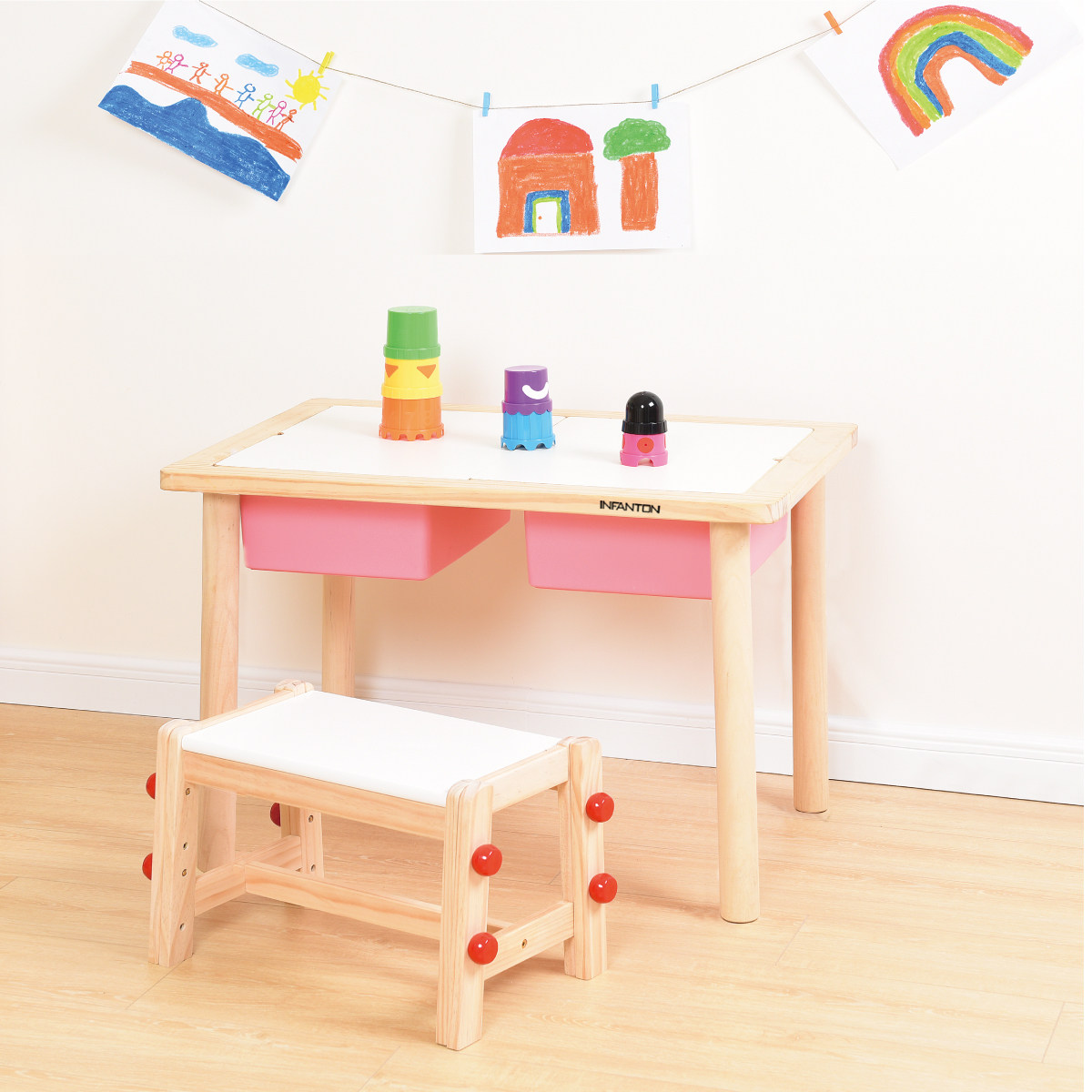 Modern Storage (children's table lifting white containing box) Modern Storage (children's table can lift pink containing box) Mo
