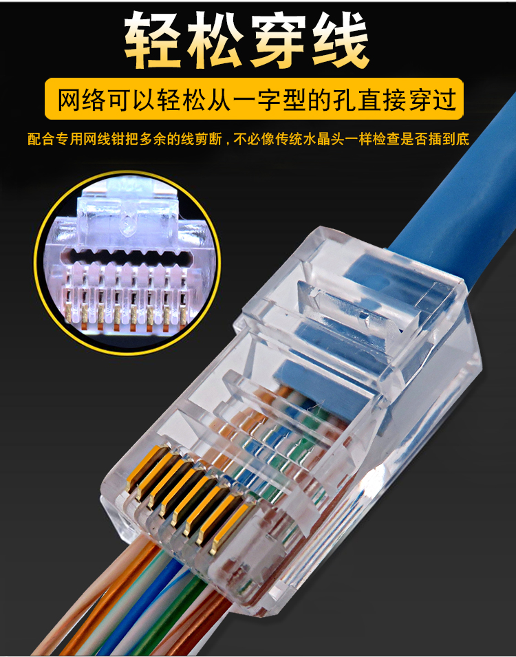 CAT5E network cable super six categories five RJ45 connector over-test perforated through-hole plug network gold-plated crystal head